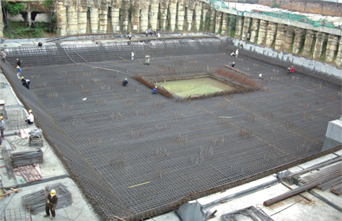 建筑物采用何种基础型式,与地基土类别及土层分布情况密切相关。工程设计中,常遇到这样的地质情况,地下室底板下的岩土层为风化残积土层、全风化岩层、强风化岩层或中风化软岩层,因此,有可能采用天然基础。高层建筑地下室通常作为地下停车库,建筑上不允许设置过多的内墙,因而限制了箱型基础的使用;筏板基础既能充分发挥地基承载力,调整不均匀沉降,又能满足停车库的空间使用要求,因而就成为较理想的基础型式。筏板基础主要构造型式有平板式筏板基础和梁板式筏板基础,平板式筏板基础由于施工简单,在高层建筑中得到广泛的应用。